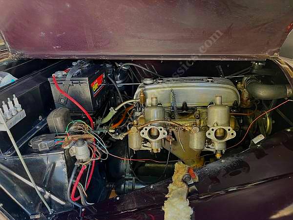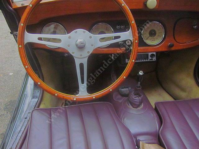 BUT THERE IS MORE>>>>>>>.engine was tired and was just completely rebuilt, by our staff, new 89mm pistons and bores giving near 2.3 liters, ported head, balanced bottom end, new clutch, new high output water pump, new oil pump. Completely rebuilt HS6 SU carbs, electronic ignition, AND a freshly rebuilt close ratio Moss gearbox. Throughout, the drivetrain has been expensively and freshly rebuilt.