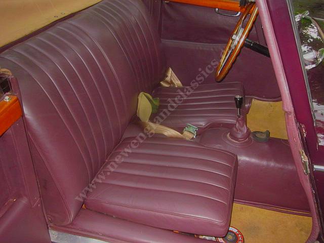 We purchased the car from the estate of the original owner who purchased the car directly from the factory in 1962. And back and forth between his properties in South Carolina and California. When acquired by us, the aesthetics were absolute show quality: beautiful paint quality in Eggplant over very deep burgundy (almost black), new maroon leather seats, Wilton wool carpets bound in leather, top, boot cover, and full tonneau (all in tan stayfast cloth). Same with chrome and trim.