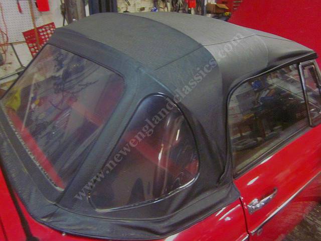 Top appears to be new as does most of the interior. Very nice seats, panels, carpets, dash, dash top, all original working instruments, has a tonneau, very clean trunk compartment, excellent chrome, new knock offs, matching seat belts and has been converted to negative ground and fitted with a modern stereo/CD.