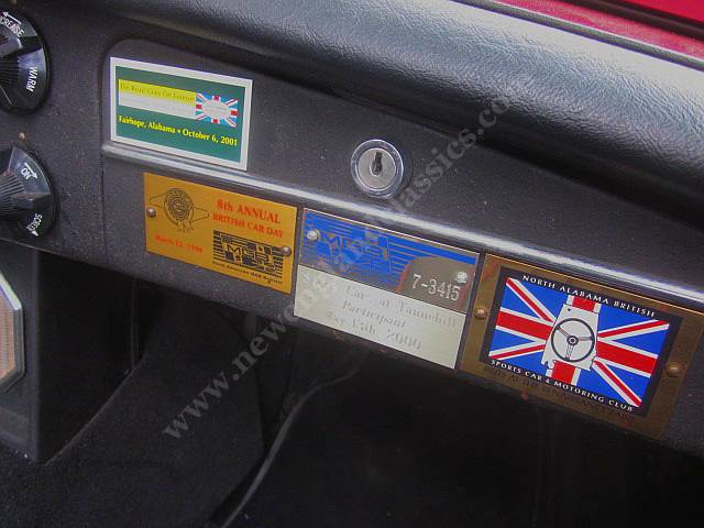 Can there be more? Wonderful attention to details....Lucas headlights, Lucas Flamethrower driving lights, aeroquip metal braided lines to the oil cooler, Dunlop tires, thicker front sway bar, full tonneau and half tonneau, top is good (but not great.....clearly, at shows, no need to put the top up), wire wheels, carpeted trunk, stereo, on and on.