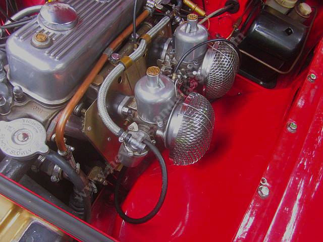 BUT MOST IMPRESSIVE is the engine bay.....clearly done for serious shows and it is immaculate. But far more than meets the eye...redone head, ported and milled, rebuilt engine.....10:1 flat top 40 over pistons, Deves rings, performance camshaft, redone bottom end and top end, new SUs (near $2,000), bored block, reconditioned connected rods, VERY impressive.
