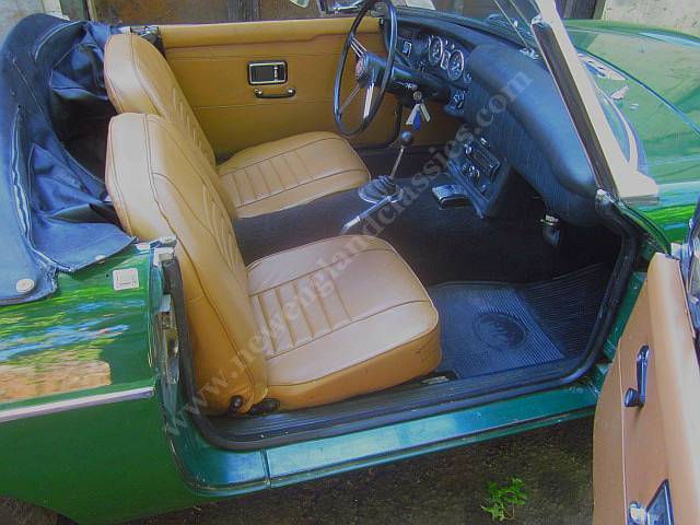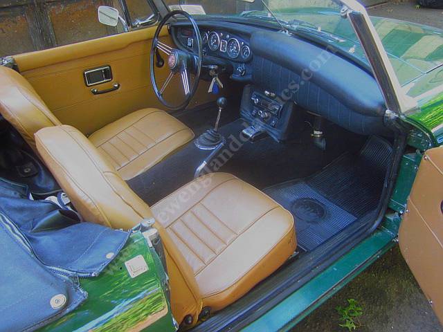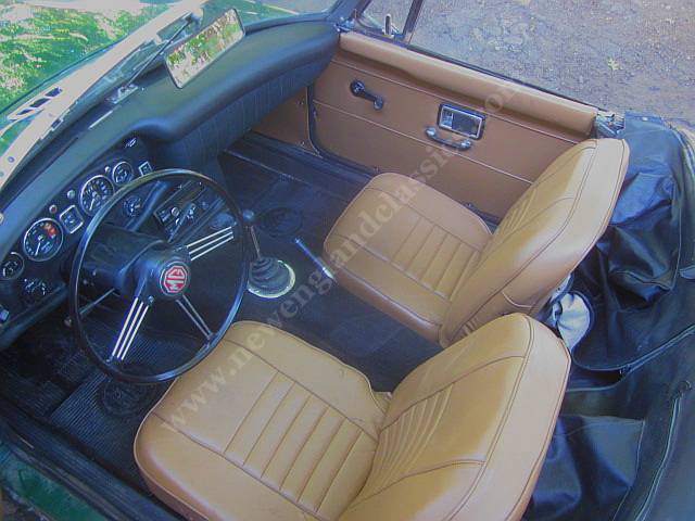 An all around nice MGB....not rusty, excellent body, 'mirror image' BRG paint, excellent tan interior, low back seats, wire wheels, very good mechanicals, excellent oil pressure, no smoke, top is fairly new, good chrome, excellent floors, not much to add....great color combination, 92hp engine, all synchro transmission, dual master cylinders, earlier aesthetics with later safety items. Makes for a nice MGB.