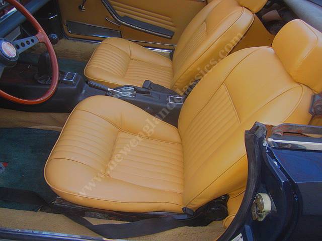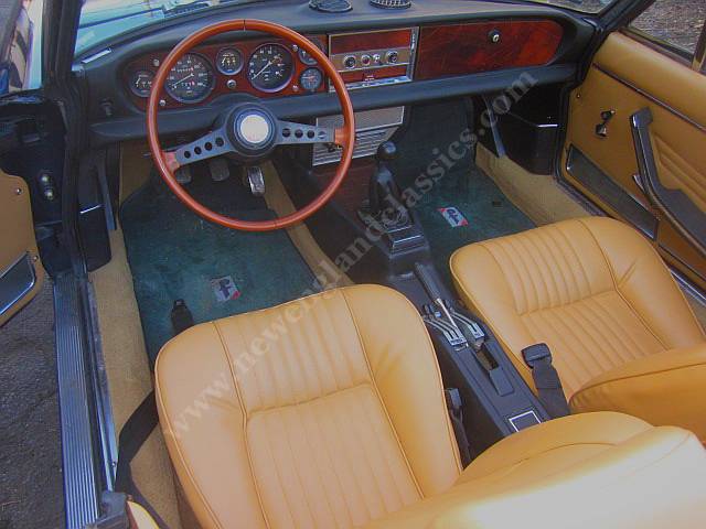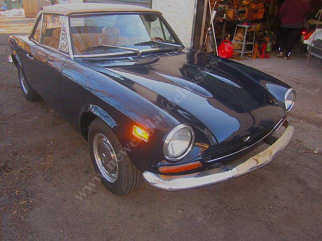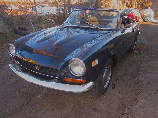 Just in, a beautifully prepared example of a fairly early 124, still with chrome bumpers. Body is excellent, new paint is show quality, no holes or apparent rust underneath, just about perfect interior, new tan top, clean trunk and engine bays, and NO RADIO (to me, a sign a 'kid' never owned it).