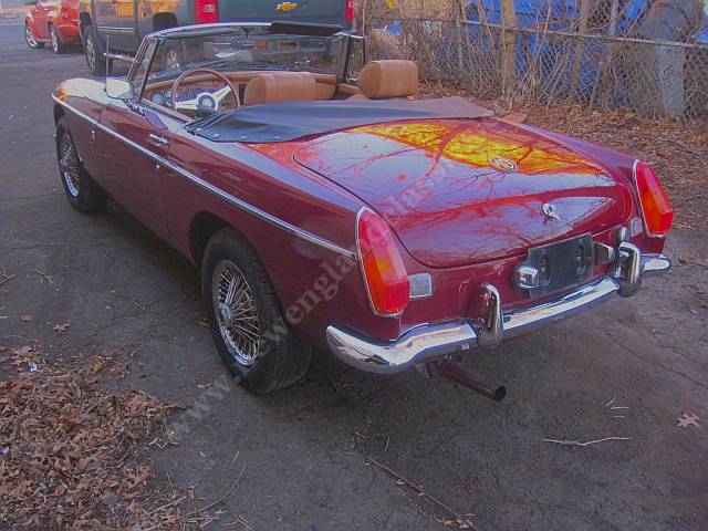 Excellent mechanicals, engine fitted with a Weber 32DGV carb with electric choke, has 4 speed transmission with perfect working overdrive (and offers six forward ratios), brakes redone, wire wheels, new convertible top, and excellent interior..........we dyed the dash and console to match the interior, fitted a beautiful burled wood dash and a premium wood steering wheel. And you can see the results, a far improved interior.