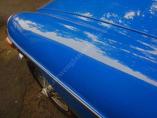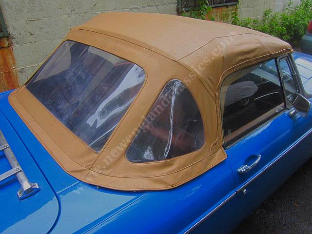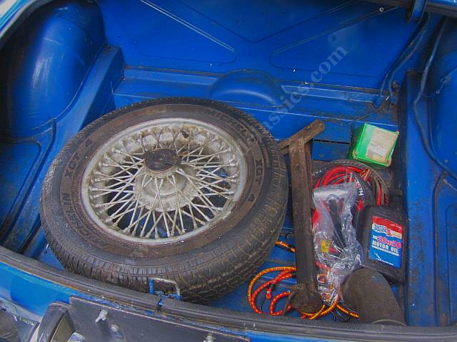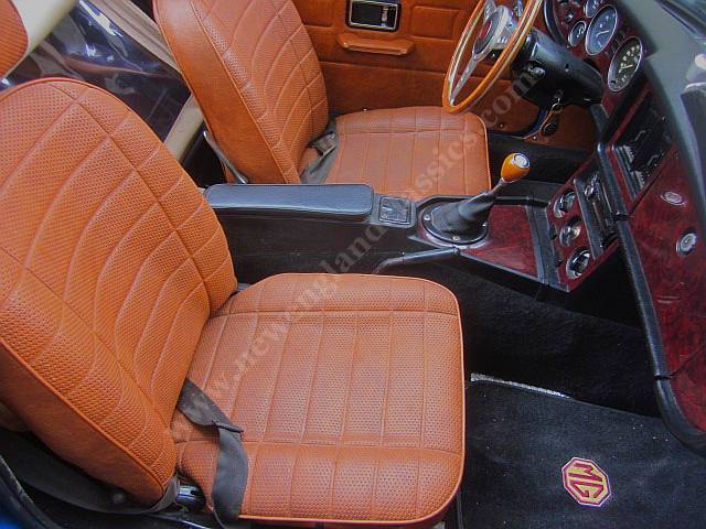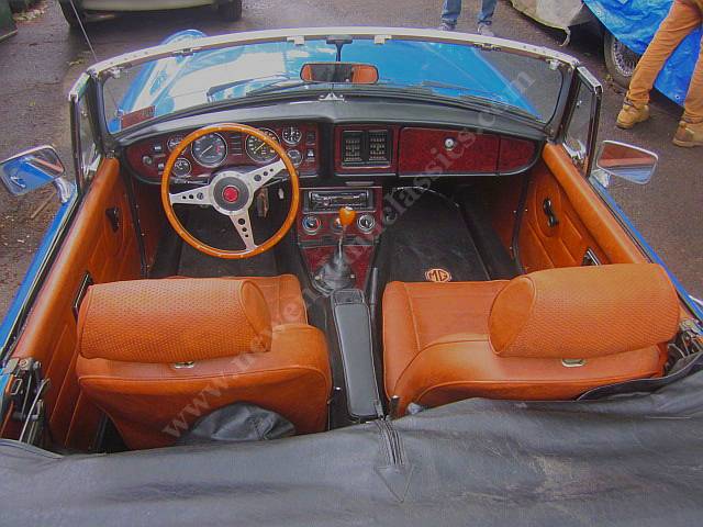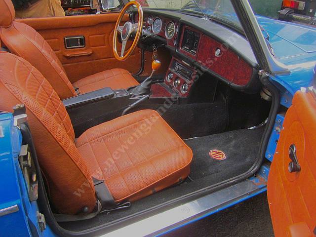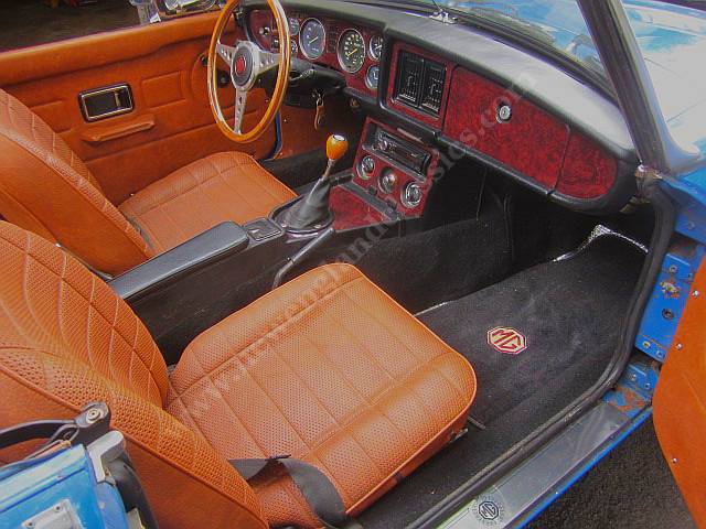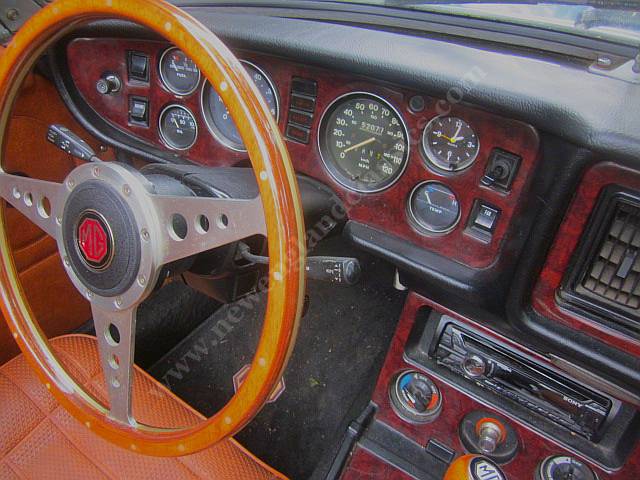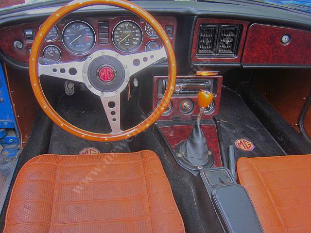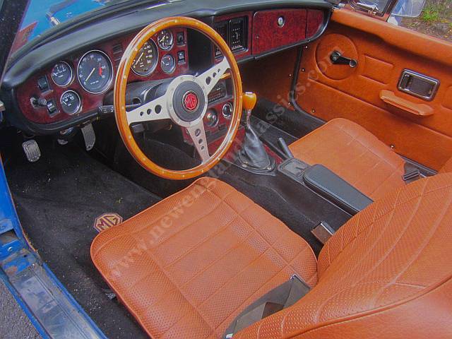 AND...........excellent body and paint (repainted once in original color), spotless engine bay and trunk compartment, new tan top, excellent (probably) original seats and panels, new MG floor mates, excellent dash with a new burled wood covering, wood steering wheel, Sony stereo/CD, full tonneau.