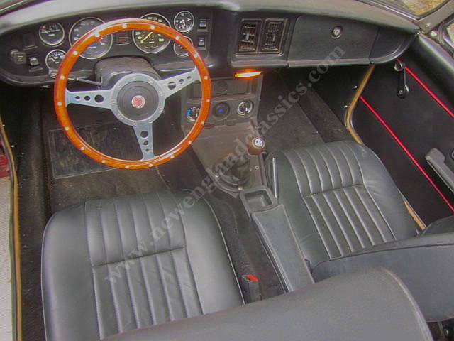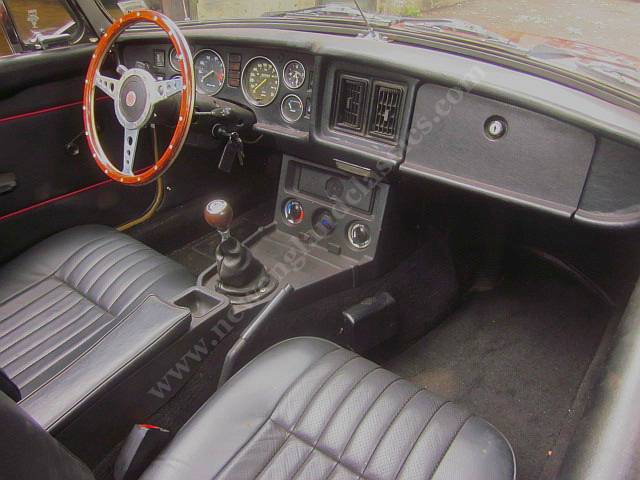 And a lot of additional work done (mostly by us): 32/36 DGV Weber carb, tubular headers, a complete professional chrome bumper conversion, side lights eliminated, new Mk I grille, lowered to pre 1975 ride height, new Minilite style light alloy wheels, and the result: as quick as an early MGB, exterior aesthetics very close to the earliest and best looking MGB. A wonderful combination of the beat of the early cars with all of the advantages of the later cars (front and rear sway bars, power assist disc brakes, bigger radiator with electric cooling fans, better engine mounting, extensive factory rust proofing, bigger and more reliable gauges, better electrics, more fuses, more efficient heater, on and on). And now, with the improvements we have added, the best MGB never sold in the USA.