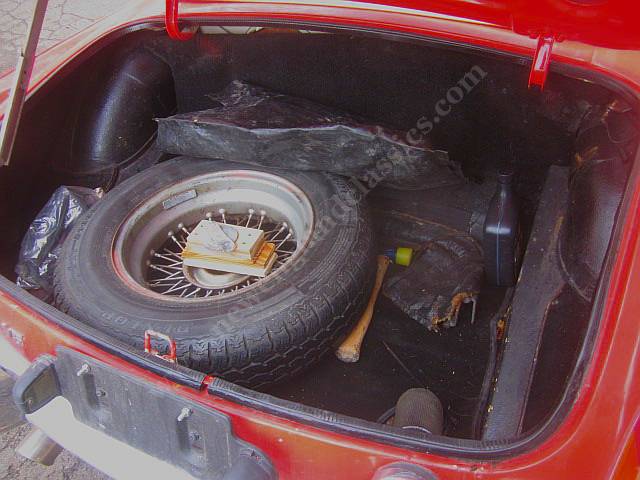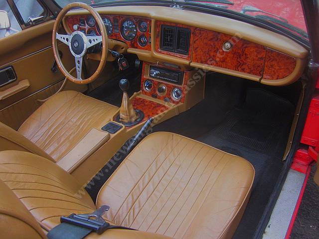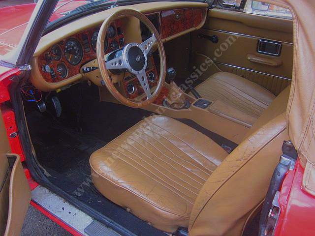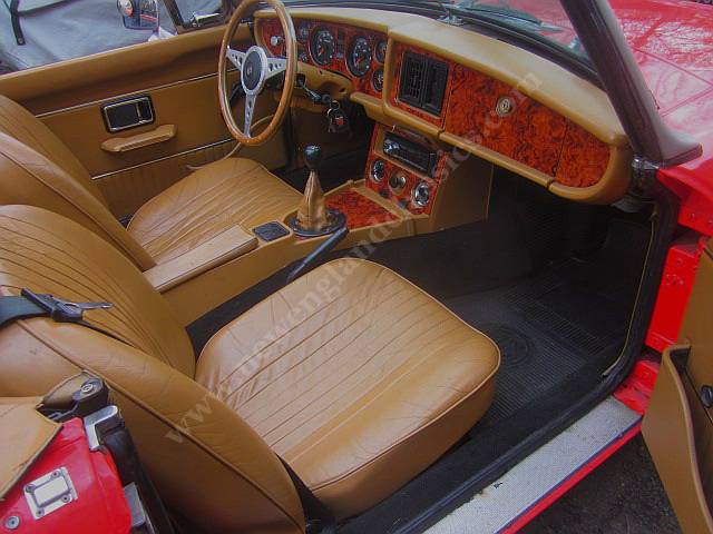 Rebuilt Chevy V6 engine, 5 speed transmission, special shrouding around the radiator and front AND rear electric cooling fans, power assist four wheel disc brakes, wire wheels, all new interior with leather seats, dash and console dyed to match the rest of the interior, burled wood dash, wood steering wheel, modern stereo, new tan convertible top, luggage rack, tonneau dyed to match the top, excellent wiring, ALL new VDO gauges (all connected, all work....and probably a lot more reliable than the original Smith's instruments), door pockets, matching carpets, and (best of all), it all works together in a phenomenal way.