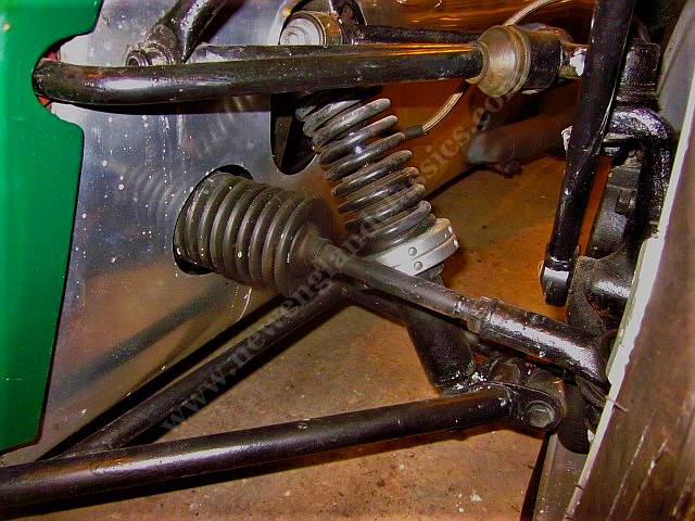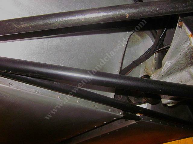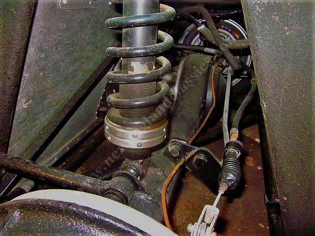 Brakes were redone, shocks with adjustable ride height perches, new Minilite wheels, an alloy radiator with thermostatically controlled electric cooling fan, even (and this is incredible) a working fuel gauge. Has an oil cooler with Aeroquip braided steel lines, dual master cylinder, aluminum oil and coolant catch bottles, and cable operated clutch. And new three point belts.