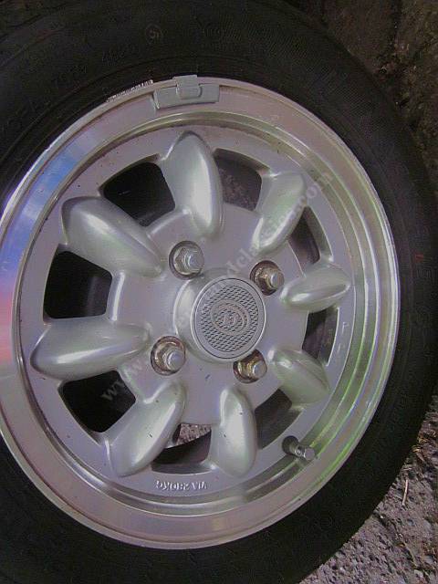Has 12" Minilite wheels with H rated165/60 radials, high gearing allowing easy 80+ mph cruising (and have seen 90 mph). And needless to say, handling and steering are incredible.